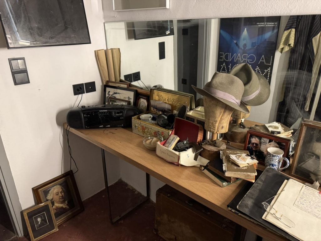 Στον προαύλιο χώρο του Θεάτρου της Οδού Κυκλάδων, ειδικά διαμορφωμένες προβολές παρουσιάζουν σπάνιο αρχειακό υλικό: φωτογραφίες και αποσπάσματα από την πορεία του, ενώ μέσα στο θέατρο εκτίθενται κοστούμια και σκηνικά αντικείμενα από εμβληματικες του παραστάσεις (Αντιγόνη 1992, Η σπασμένη στάμνα, Η νύχτα της κουκουβάγιας κ.α.) . Μαρτυρίες συνεργατών και φίλων φωτίζουν την προσωπικότητα και το όραμα του. Ταυτόχρονα, απο τον ειδικά διαμορφωμένο χώρο, οι επισκέπτες θα μπορούν να δουν από κοντά το προσωπικό καμαρίνι του Λευτέρη Βογιατζή, έναν χώρο, που παραμένει αναλλοίωτος, διατηρώντας τα προσωπικά του αντικείμενα και την ατμόσφαιρα της δουλειάς του.